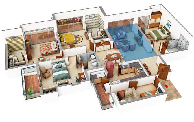 • The apartments include 3 and 4 BHK with contemporary modern architecture. Towers that are less dense and which are that privacy-ensuring and congestion-reducing.