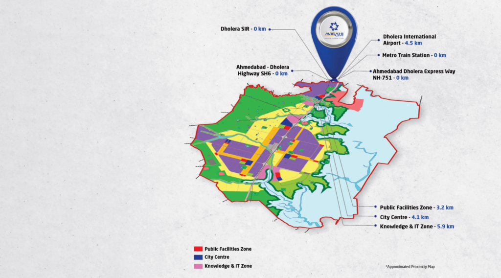 - Strong connectivity via Ahmedabad-Dholera Expressway and proposed metro & bullet train