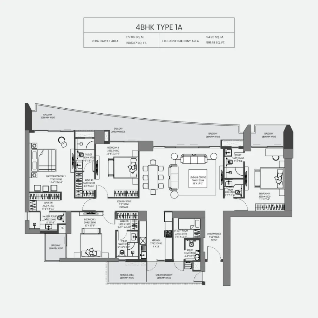 | 4 BHK | ~3,529 – 3,600 sq.ft | ₹7.23 Cr – ₹7.41 Cr* Onwards |