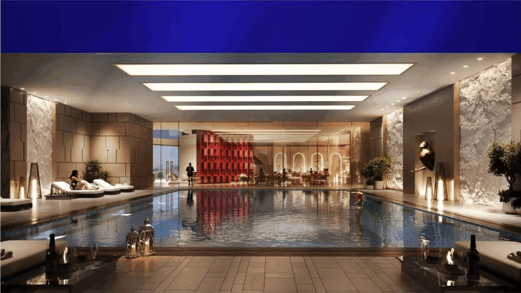 - Luxury Amenities: The project provides an infinity-edge pool, rooftop sky lounge, wellness club, sports courts, and landscaped podium garden.