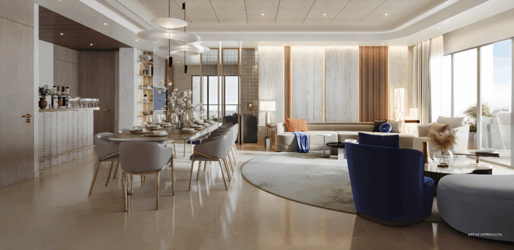 - Ultra-luxury 3.5 & 4.5 BHK homes with villa-like ceiling heights and open views