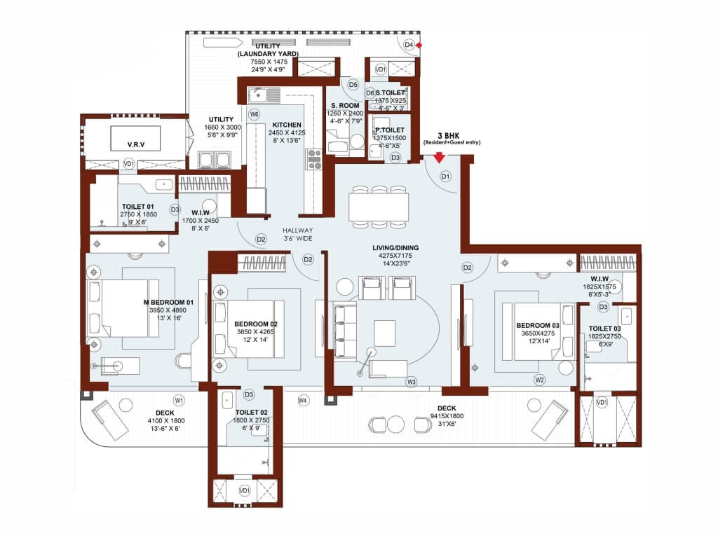 3.5 BHK + SQ | 2,537 – 2,945 | 6.3 – 7.5 |